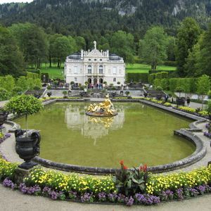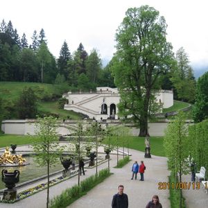 ほどなくリンダーホーフ城に到着。ガイドブック等で観ていて、是非ともこの目で観て見たいと言う思いが強かっただけに感激していました。上手い具合にお日様も顔を覗かせてくれ、目いっぱい写真を撮る事が出来満足しました。(私はお城には遭えて入場せず、写真を撮っていました。)
