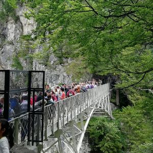 ノイシュバンシュタイン城の入り口の集合時間が解散になって約1時間半後に指定されました。かなり時間に余裕があると思いゆっくりとお土産を見ていたら、上へ行くバスが20分に一本しか来ず、しかも繁忙期だったためかなり多くの方が並んでいたので次のバスには乗れず、かなり時間がかかってしまい吊り橋でゆっくりと写真撮影をする時間が取れませんでした。ご注意下さい。
