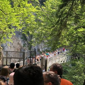 ここで一つ失敗しました、シャトルバスは往復ではなく片道にするべきでした。バスの到着地点からマリエン橋まで歩いて5分、橋からお城を見るために15分並んでまたバス到着地点、そこからお城まで15分ほとんど下りで歩いていきます。帰りは上り坂です、これは結構きつかった・・・お城のそばから馬車で山下りが楽ちんでだったと思います。馬車で登るとマリエン橋までが大変です。是非、シャトルバスーマリエン橋ーお城ー馬車をお勧めします。