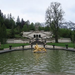 リンダーホーフ城はルードヴィヒ2世による唯一完成したお城ということであったが、小さくこれがお城、という印象をもったが、城の内部はロココ調の豪華なものであった。庭園は一部工事中であったため情緒に欠ける面もあったが、金色の女神像には目を見張った。