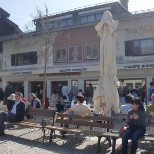 オーバーアマガウは日曜で残念ながらお土産店等ほぼ閉まっていましたが、イタリアンジェラートやカフェ等開いている店舗もあったので、かわいらしい壁絵とともに楽しむことができました。
