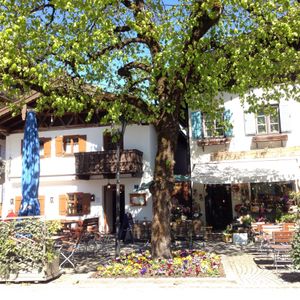 日曜日の参加だったので、オーバーアマガウの町の店の大半は閉まっていた。アイスクリームが名物らしいカフェや一部のお土産屋のみ開いていた。自由時間が40分くらいだったので、店が開いていたらあっという間だっただろう。店に入らなければ30分もあれば回れる。
