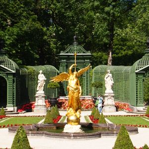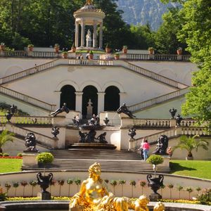 ノイシュバインシュタイン城では見られない、豪華絢爛な内装や庭、晴れ渡った青空と鮮やかな緑の中でお城が美しく映えます。一見の価値はあるかと思います。