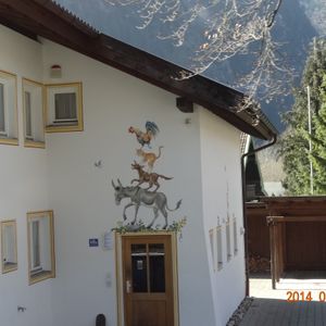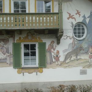 リンダーホーフ城の次に立ち寄った場所では、童話の世界が壁面に描かれています。