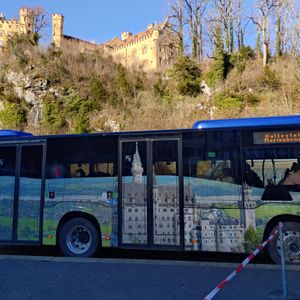 目的地に到着する前にバス内で説明がありますが、帰りのバス出発時間までのスケジュール管理が必要です。城内見学ツアーを希望する方はガイドさんから渡されるチケットの開始時間を見てお城まで移動、徒歩かバス利用で時間も変わります。私の場合は見学時間まで1時間以上あったので、シャトルバスで上がって(片道3.5€)すぐにマリエン橋まで行き写真など撮った後お城まで降りました。お城の近くにはお土産や軽食が買えるところがあります。見学時間に少しでも遅れると入れないので余裕をみて入り口まで行きました。