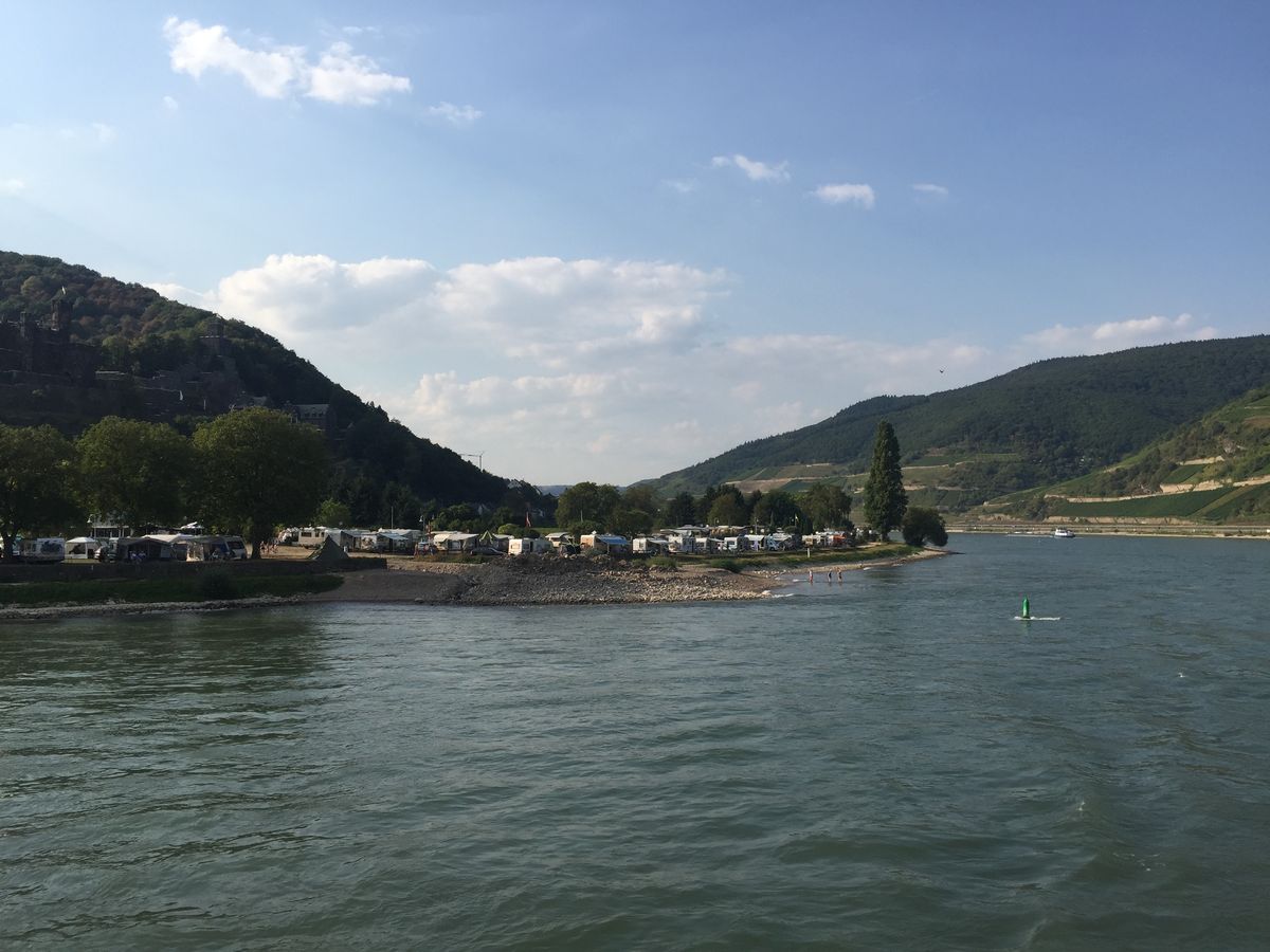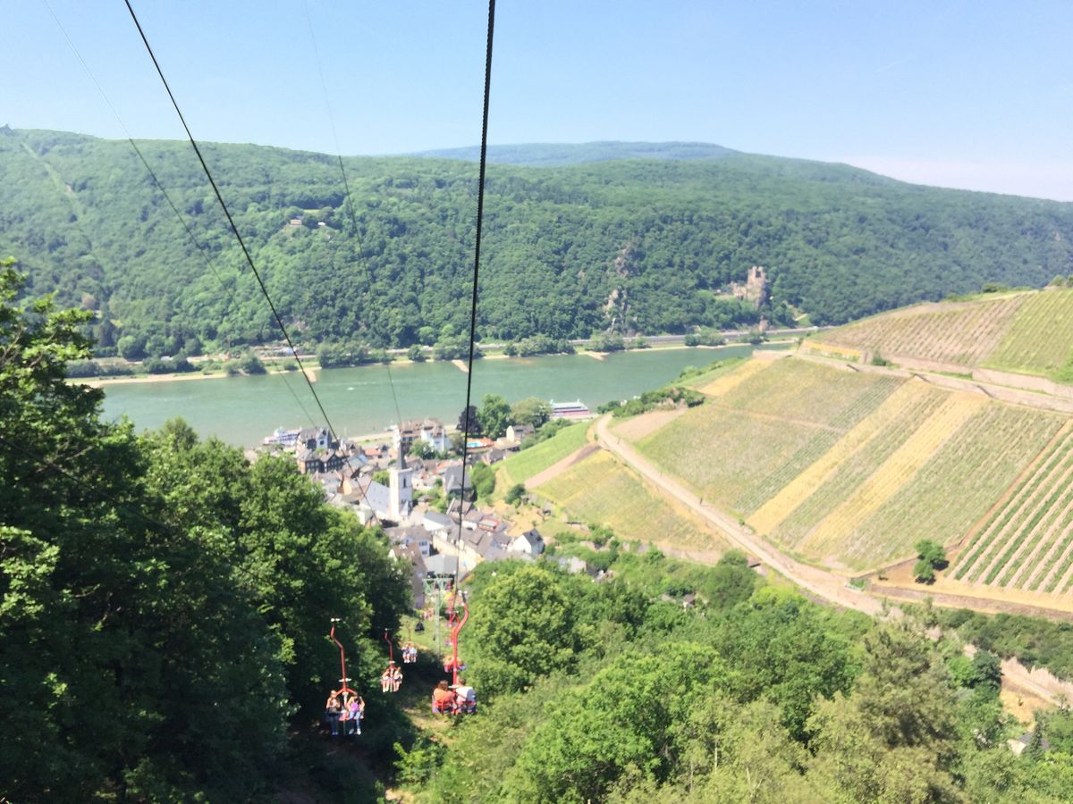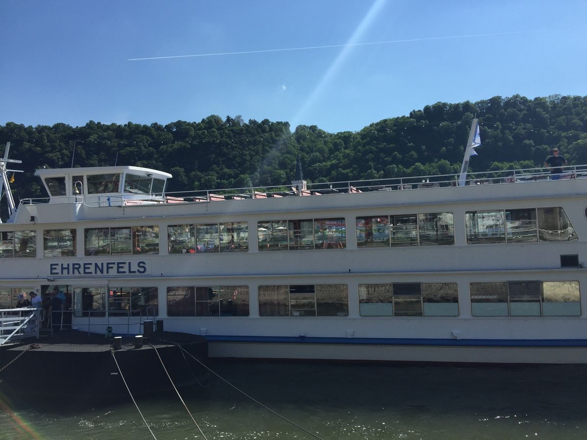 始めは個人でライン川下りを予定したが、電車が満席で予約が取れず、しょうがなくツアーに参加。11:00集合しバスでリューデスハイム近くの丘の上で写真撮影。その後Bergstationからリフト(5ユーロ別料金)で丘を下りTalstatioでリフトを降りる。徒歩10分でレストランZum anker でターキーカツ又はベジタリアンの撰択ができる。ターキーカツはカレーソースで美味しい。ジュースは3ユーロ程度。ビール、ワインあり。チップ要求なかった。レストランスタッフはオーナーみたいな人が偉そうだったが、その他のスタッフは普通。その後ライン川下り1時間半かけてst goarshausenで降りバスでランチをしたレストランへ戻りワインテースティング、希望者だけ購入。ガイドは陽気で英語が上手でわかりやすい。リューデスハイムで30分買い物し帰宅。チップの回収で回るが強制ではなかった。