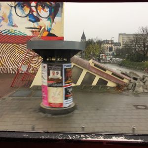 フランクフルトの駅について、バスを探しました。停留所の標識はちょっと小さいですが、まさに駅の正面。バスプールの入口手前にあります。