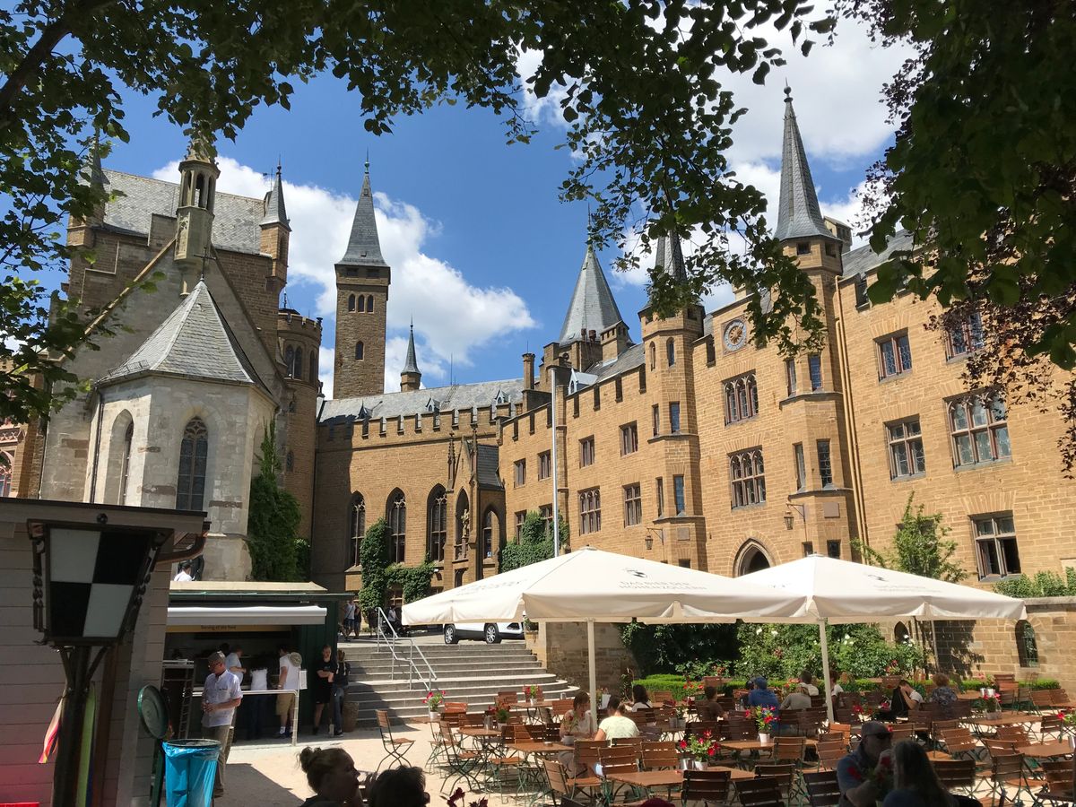 9時半にフランクフルトを出発して、車は片道が1時間15分くらい。着いたらサンドイッチと水をもらいました。サンドイッチは適当な時間に適時食べます。特に昼食タイムはありません。少し歩いてケーブルカーに。城に登るケーブルカーを待つのが15分くらい。城はガイドさんと見学です。その後、少し自由時間がありました。ケーブルカーで降ります(待つこと同様)。その後、自由時間が1時間は無かったと思います。お土産物屋さんを少し見ると、お茶を飲んだりするのは少しむずかしいかも。13時30分に出発して、15時少し前に帰りました。