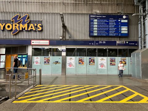 ミュンヘン中央駅構内 プラットフォーム26/Arnulfstrase側ホーム手前のDBの電光掲示板の下 集合