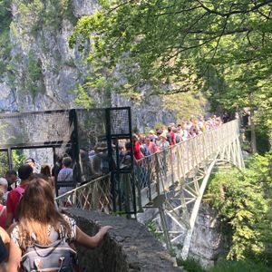 ノイシュバンシュタイン城到着後はランチをベンチで済ませ、行きはマリエンヌ橋までシャトルバスに乗り帰りは徒歩でした。橋も入場制限していて30分以上並んだので、往復シャトルバスにしないといけないかはチケットの時間によると思います。ちなみにバスは片道3ユーロ、往復6ユーロ、現金のみで、ガイドさんは車内で支払う様に案内しますが、乗り場前にチケットを売っている小屋があるのでそこで先に購入した方が良いです。