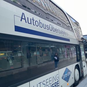 12月に一人旅で利用しました。まずバスにGrayLineSIGHTseeingと記載があると行き先の補足説明に書いてありますが、そのような文字はバスには書いてありませんでした。私は「AutobusOberbavern」と書いてある二階建てのバスでした。バスの行き先が流れるテロップのところもMerry Christmasと流れてるだけで、ツアーの情報は流れてなかったので、バスガイドさんに聞いて確かめるのが良いと思います。