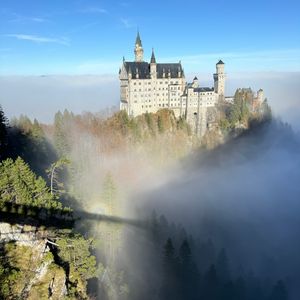 綺麗な青空でノイシュバンシュタイン城も映え、
