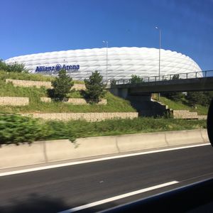 バスの中では右側に座れば、バイエルンミュンヘンのホーム、アリアンツアレーナを