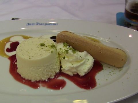 7月26日、午前中のレジデンツ旧市街ツアーの時に、コンサート会場の目星をつけていましたので、ホテルでちょっとおしゃれな服に着替えて、娘と二人まだ明るい夕方の町に出かけました。マリエン広場からレジデンツに向い、2頭のライオン像の間を入り、コンサート会場を確認したのち、周辺を見て回りました。将軍堂の前では、若いミュージシャン(たぶんイタリア人)のバンドの舞台がしつらえてあり、とても賑やかでした。コンサートは、2つのバイオリンとチェロによるアンサンブルで、なじみのない曲が大半でしたが、響きのよい礼拝堂でとても楽しめました。100人ほどの観客は、ほぼ地元の人々のようで、技巧を駆使した演奏には惜しみない拍手を送っていました。終了後に案内されたツム・フランツィスカーナーでは、バイエルン料理を楽しみました。ミュンヘン初めての夜でしたので、お任せのお料理をいただいたのですが、とてもおいしく、ビールとともに大満足でした。