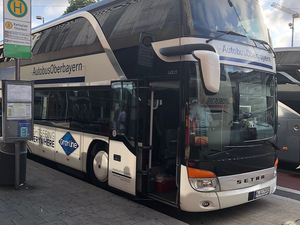 朝の7時20分にミュンヘン中央駅に各自で集合し、そこから一斉にバスに乗りこんで目的地へ向かいます。日本人のガイドさんが知識豊富で、バスの中で色々な話を聞かせてくださいます。