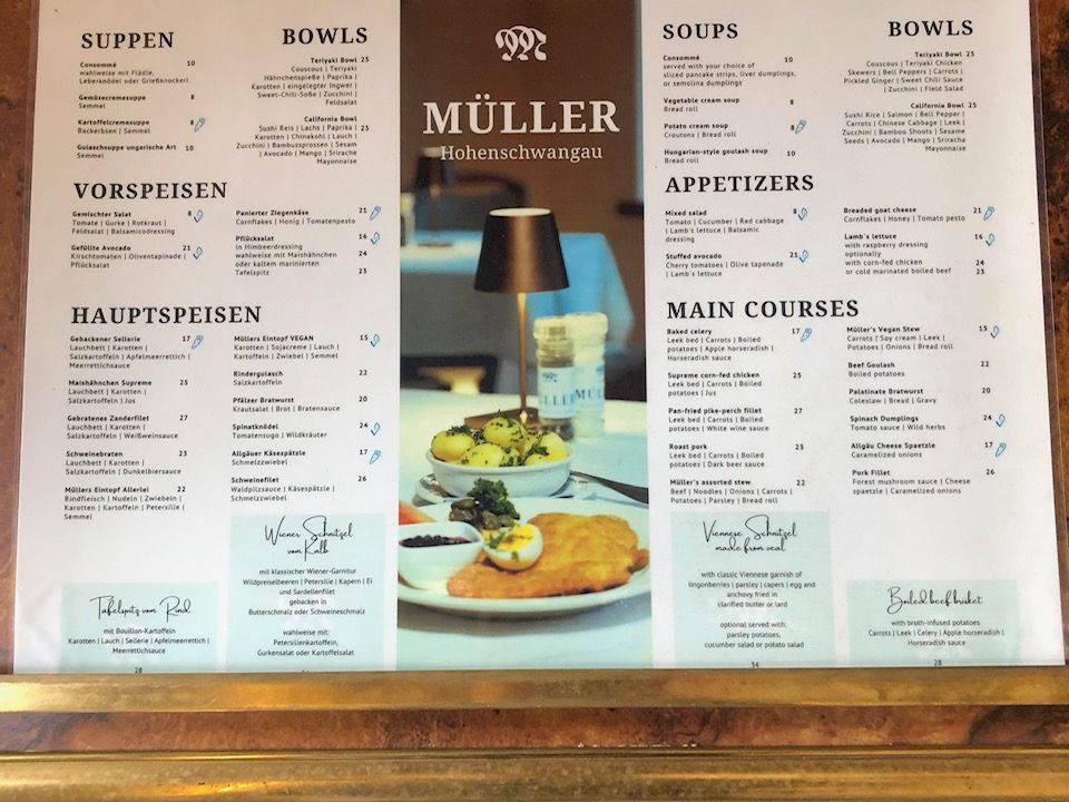 フュッセンではお店でご飯を食べる時間もありましたし、街を少し散策することもできました。そのほか、車でないと行けない豪華な教会に連れて行ってもらえて大満足です。