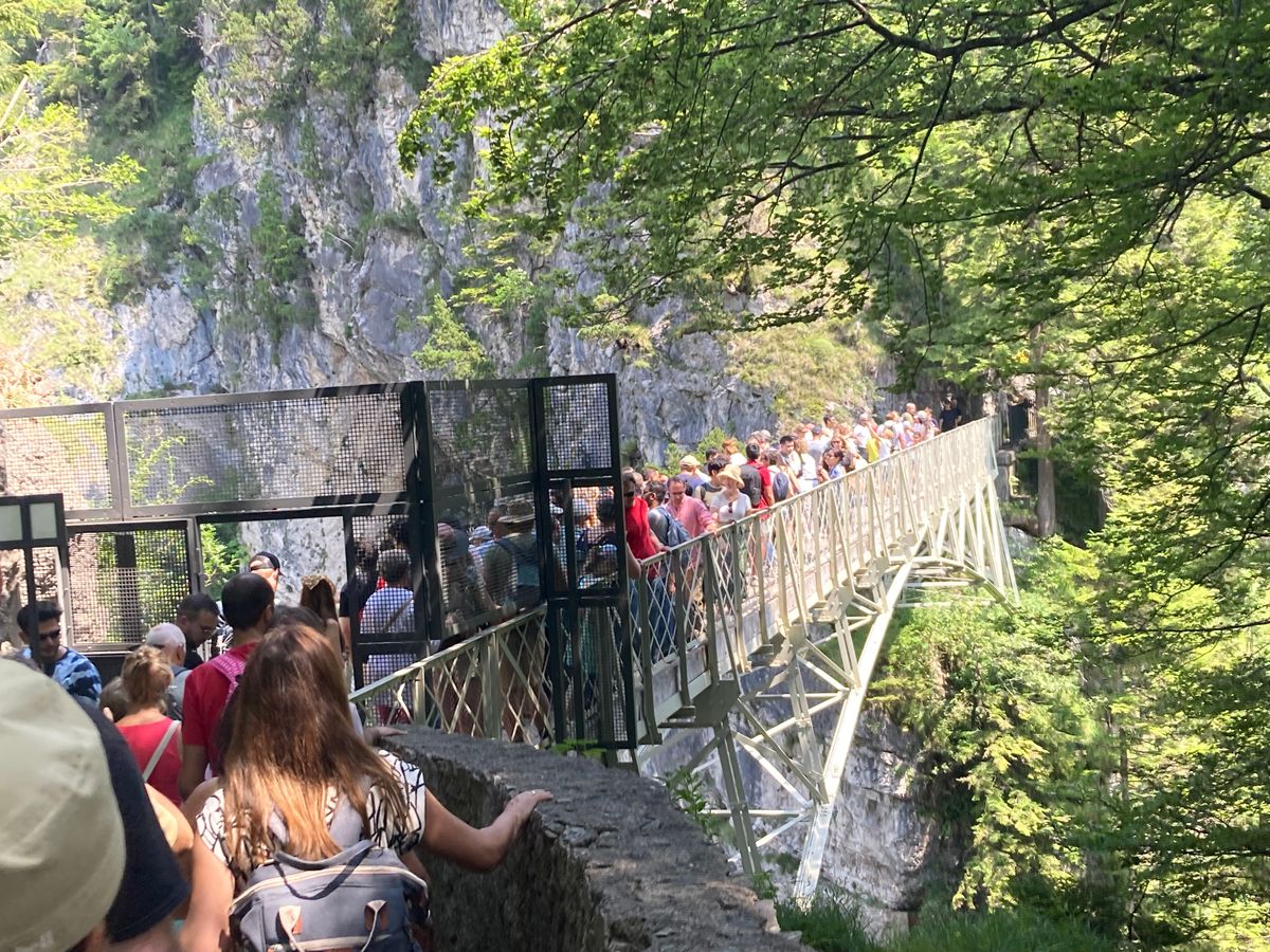 念願のノイシュバンシュタイン城に行けて最高でした☆しかも、朝早くミュンヘンを出発したので、お城の見学前にマリエン橋から見るノイシュバンシュタイン城の景色も楽しむことができました!お城の見学時間の関係で、滞在時間は短かったですが、並ばず橋に辿り着くことができました。ノイシュバンシュタイン城を外から見て楽しむにはこの橋からの見学が最適です!ぜひマリエン橋へ行っていただきたいです。お城の見学後は人が増えていて、橋までに長い行列ができていました。バスの出発時間もあったので、見学前に橋からの景色を見たのは正解でした!