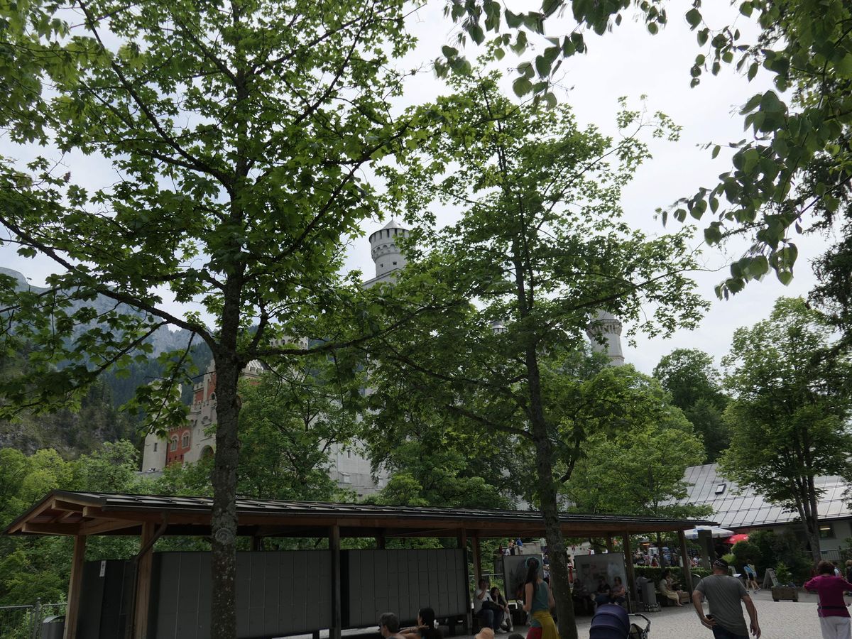 昼食時間節約のため前日に買ったパンとソーセージを持参し、添付写真の城から数十メートル下の広場にベンチがありましたのでそこで済ませました。多くの人が来ますので確実に座れるかはわかりませんが、結構入れ替わりはあります。また、マリエン橋から来る道の城の直下にも数台のベンチがありました。