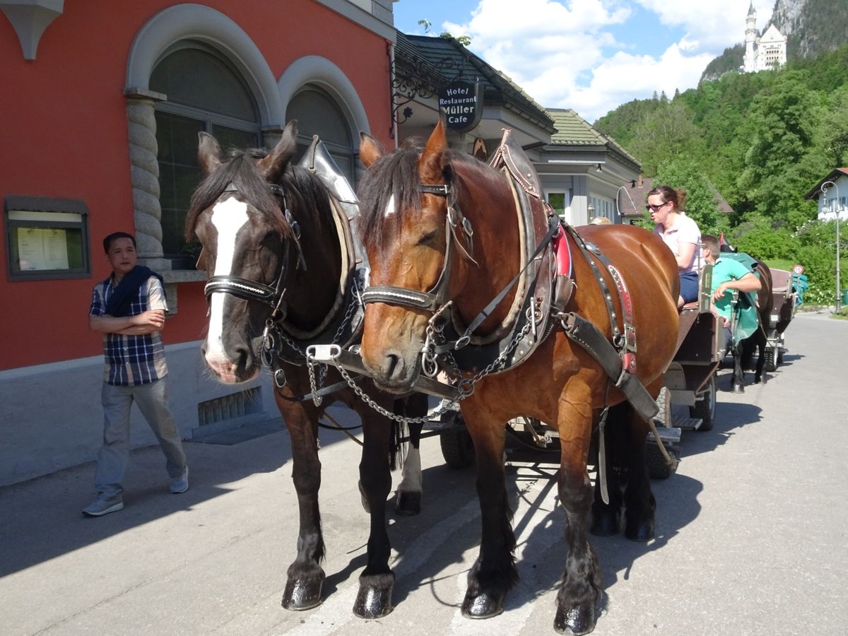 天気も良く最高に満喫しました!リンダーホーフは乙女チックな城といった感じ。英語ツアーでしたが、日本語のガイド本があり、1グループ1冊貸し出されて、和訳を読みながらだったので、内容を理解できました。ノイシュバンシュタイン城は圧巻。小高い山の上にあり、ふもとでバスから降りました。山の上までは、徒歩、馬車、バスの好きなもので行きますが、結構坂の上道のりも長く、馬車にして良かったです。人力車のような想像とは違い、完全に荷馬車でしたが、テンション上がりました。城内はツアーの時間が決まっており、指定された時間に城の前に集合。その前に全景が取れる橋に行ったりもしたので、レストランに入っている時間はありませんでした。ランチを持参してよかったです。城内は日本語オーディオガイドがあり、歴史を知りながら楽しめました。バス内にはトイレもあり、バスガイドさんも日本語が少し話せ親切でした。バス内はほぼ英語、集合時間等大事なところのみ日本語、他日本語オーディオ説明ありでした。満足です。