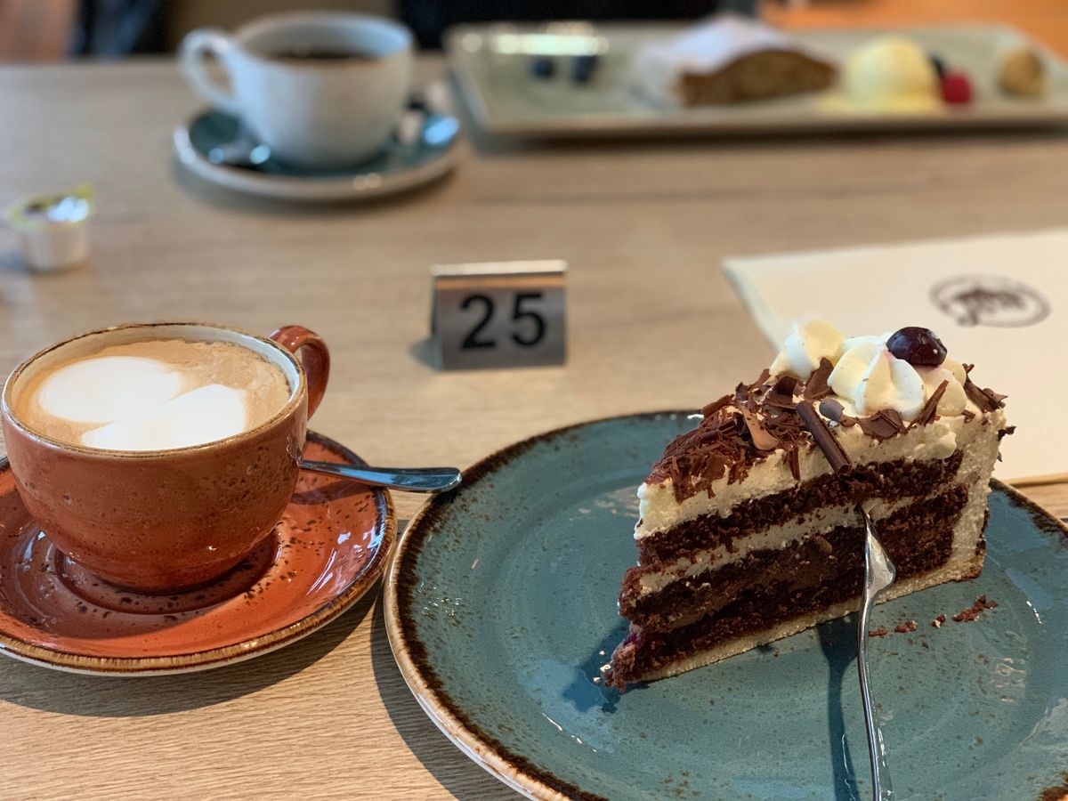 ケーキとコーヒーで€7〜9くらいだったと思います。