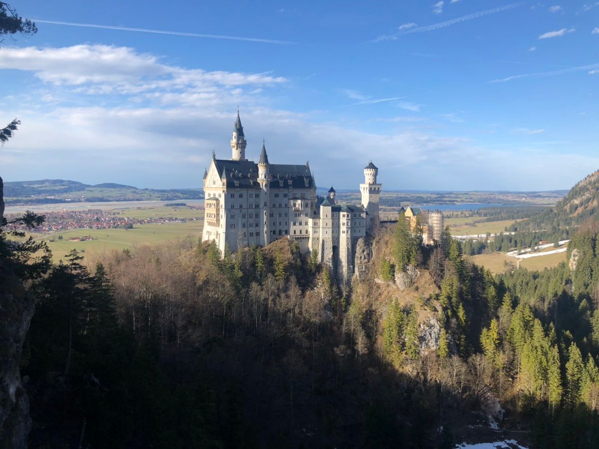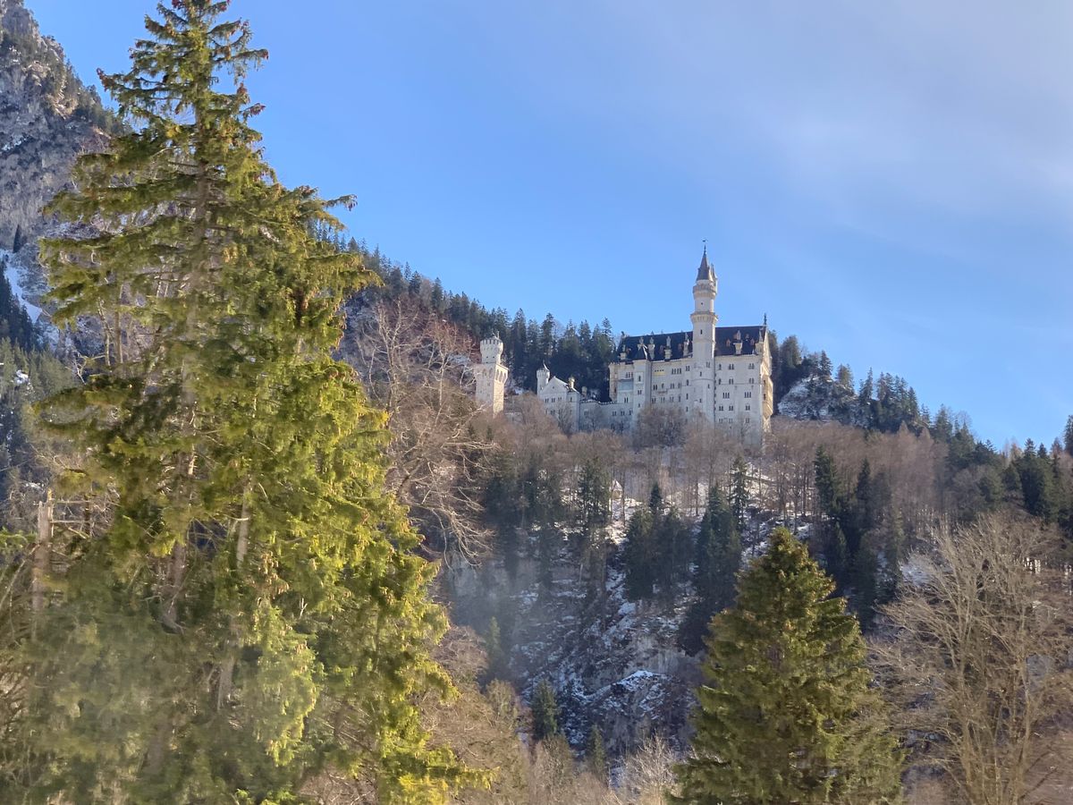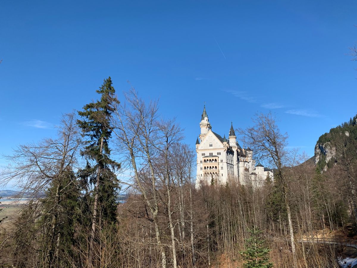 ノイシュバンシュタイン城は、いままで見たお城の中で最も綺麗でした。森の中にひっそりとそびえ立つ姿は、シンデレラ城を彷彿とさせ、異世界にきたような感覚を覚えました。