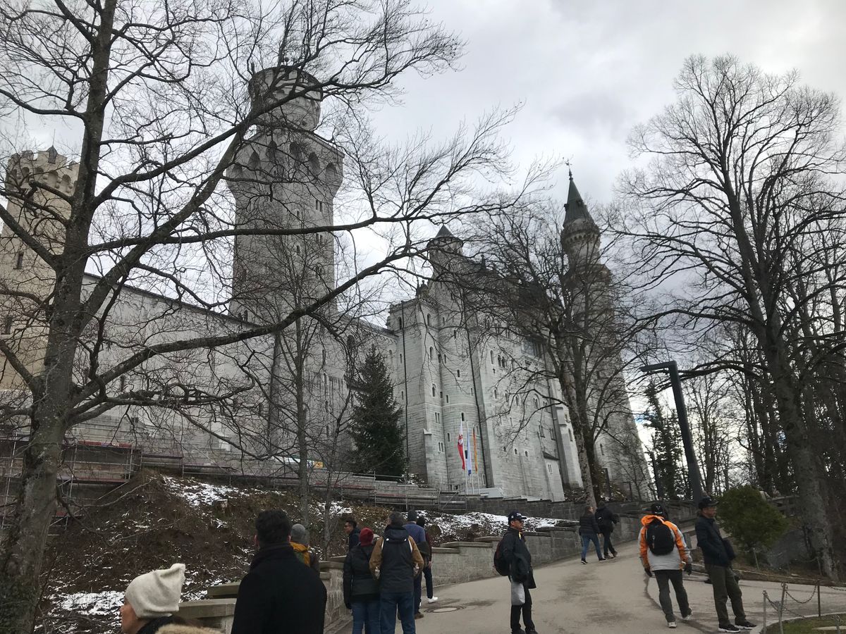 3月の冬の期間だったので、ノイシュバンシュタイン城のバスが動いてなく片道30分ほど歩きました。雪が少し残っていたので滑りにくい靴だ行った方がいいです。その他の場所でも結構歩きます。それぞれ各ポイントで休憩は多く用意してくれますが、場所によってはトイレにチップが必要なのでコイン多めに用意するといいと思います。ガイドさんはミュンヘンに詳しい方だったので旅で困ったことがあったら聞けると思います。