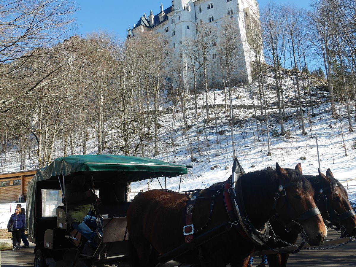 ノイシュバンシュタイン城までは麓から徒歩で向かいました。冬季はバスが運行しておらず、馬車も割高です。