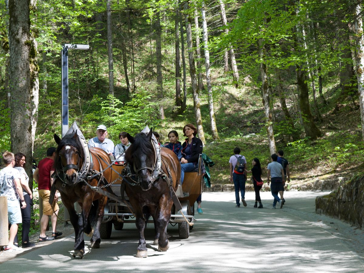 メインのノイシュバンシュタイン城に着いてからは、城までの道を徒歩か馬車かシャトルバスの3つから選ぶことになりますが、当ガイドのマーカスさんが、ドイツ語混じりの饒舌な英語で絶対に徒歩がよいです!と連呼しており、天気もよく、そうであればと徒歩にしました。さらに欲張ったことに名所のマリエン橋にも行きたかったので、徒歩でマリエン橋→城→帰途 とすべて足で走破してしまいました。とても疲れましたが異国の森林のなかを歩き回るのはとても気持ちがよく、歩きはおすすめです。