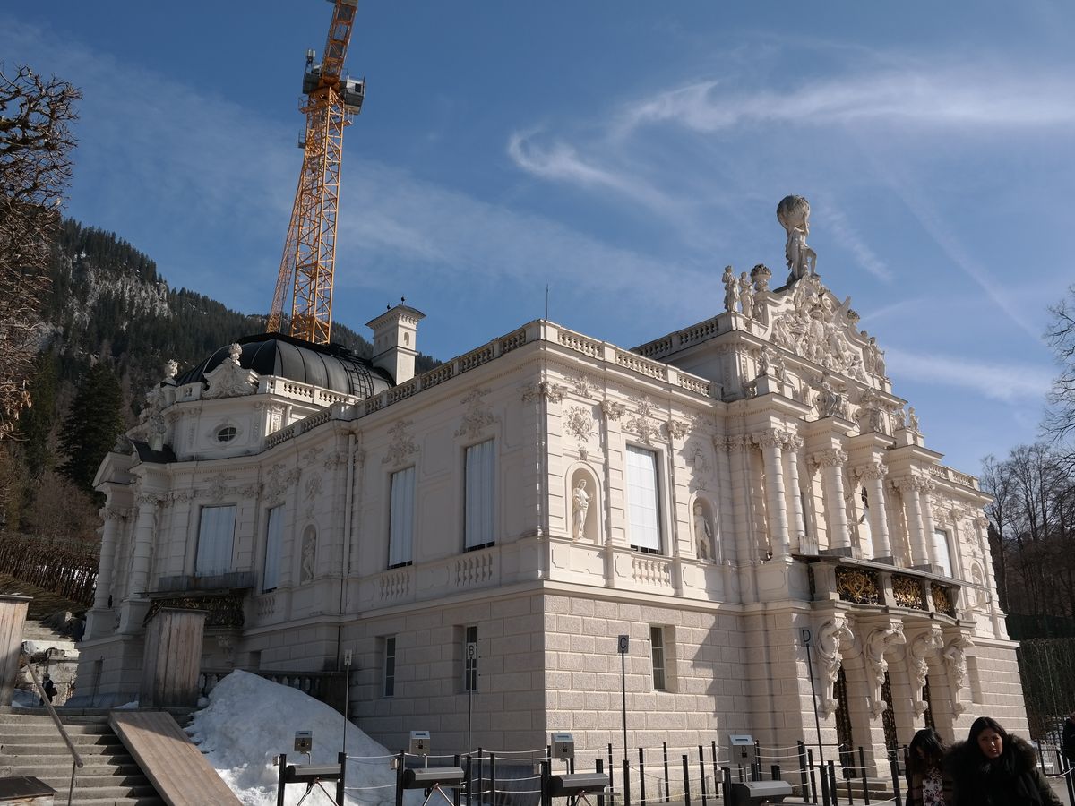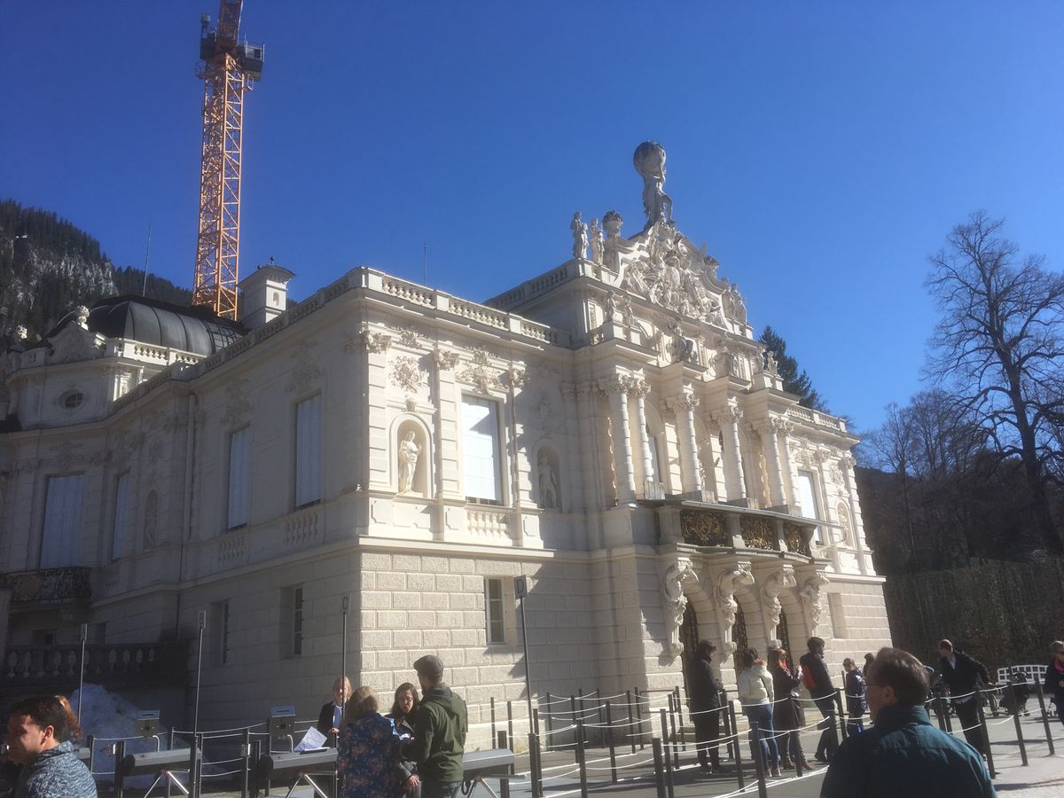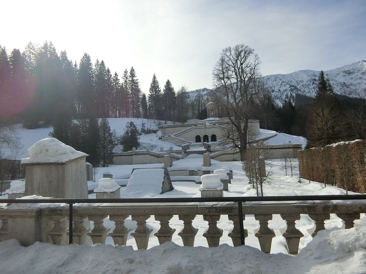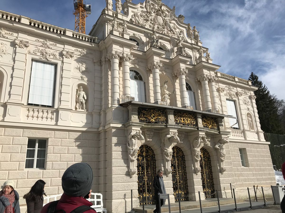 しばらく行くとリンダーホーフ城につきました。雪一面に覆われたリンダーホーフ城。城の造りは、音声ガイドの説明通りに細部までルートヴィヒ2世の拘りが感じられ、何一つ抜け目ない高貴で煌びやかなデザインに感動しました。