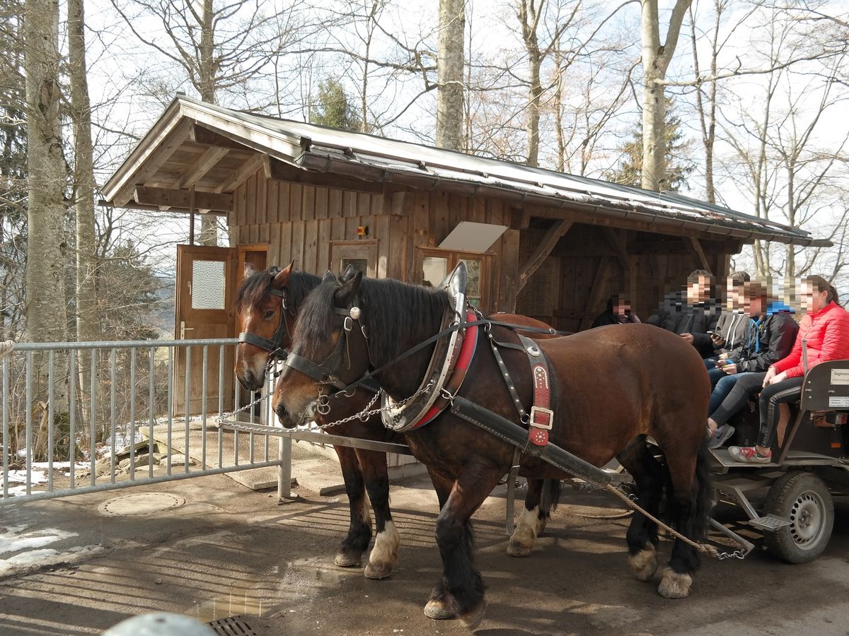 バスは冬季にはやっておらず、馬車もかなり並んでいて本数も少ないので基本的には歩くことになると思います。