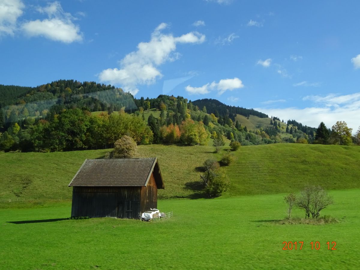 ミュンヘンから1時間半くらいで着きますが、行くまでの景色が雄大で、山が近く、北海道以上に広々していて素晴らしいです。またオータムシーズンということで、紅葉にあたり、一足先に秋を堪能しました。