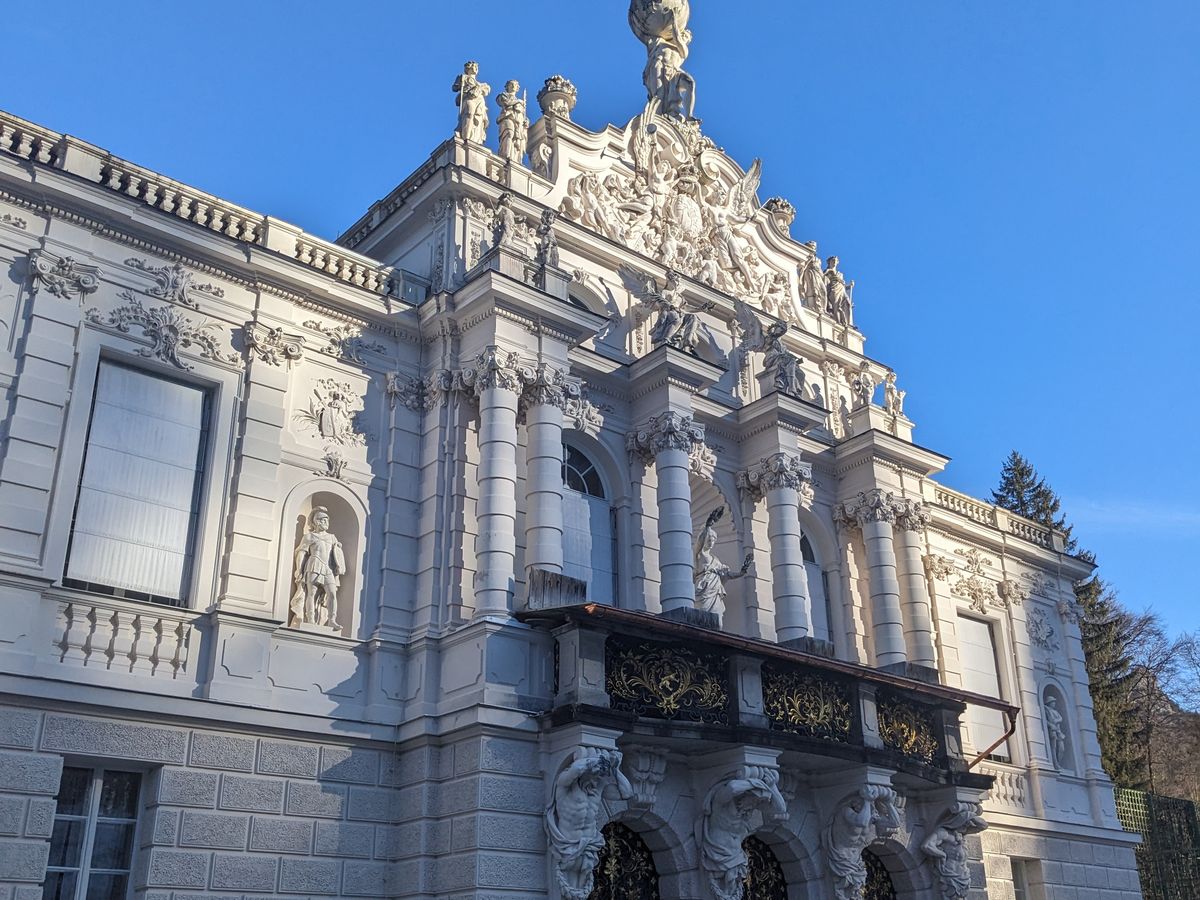 お城は、2つの白を巡るツアーで、リンダーホーフ城の中がとにかくキラキラしていて綺麗でした。ノイシュバンシュタイン城から見える景色(外の街並み)も非常に綺麗で感動しました。ノイシュバンシュタイン城までの道のりは長かったですが、音楽を聴いてたらあっという間でした。