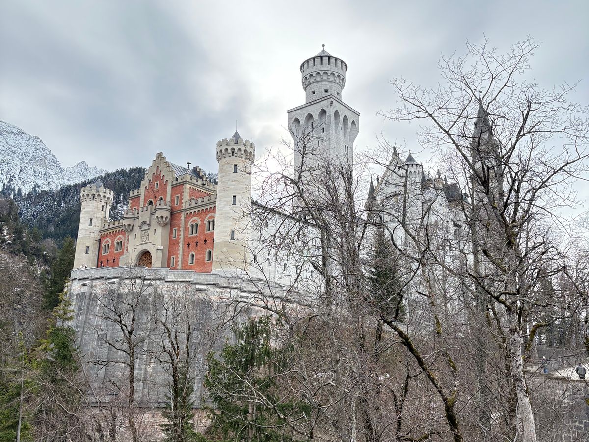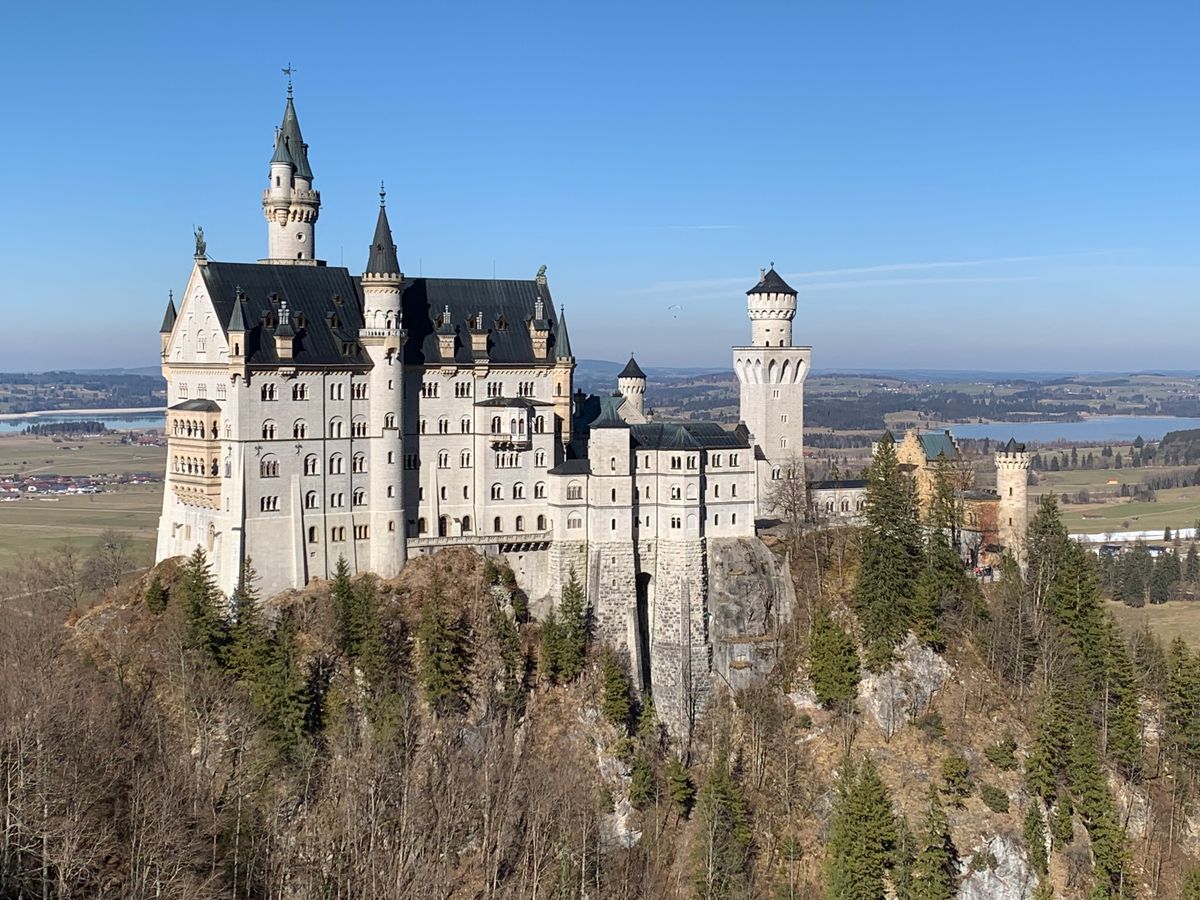 城の目の前に広がるアルプ湖が凍結し、太陽の光が注ぎ込んで湖に反射した先にアルプスの山々が連なる様は一見の価値ありまです。空気までもが凛とした極寒の中で荘厳な城が一層引き立ち、冬のドイツで素敵な時間を過ごすことができました。