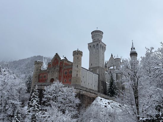 雪が止み、珍しい晴天に恵まれたおかげで、バイエルンの名所、ノイシュバンシュタイン城、リンダーホーフ城、そしてヴィース教会の3ヵ所をこの上なく効率よく、そして美しく観光することができました。