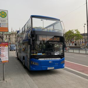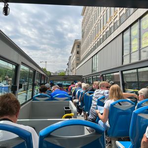 天気が少々悪く、バス天井を開けるタイミングはわずかでしたが1時間掛からずに市内観光ができました。日本語音声ガイドは全車にはないみたいな情報でしたが、私の乗ったバスには日本語ガイドがあり、ラッキーでした。ミュンヘン中央駅に近いバスストップから乗車しましたが、バウチャーで直接バスには乗れず、バスストップの先頭に停車しているチケット販売のバンで乗車チケットと交換でした。