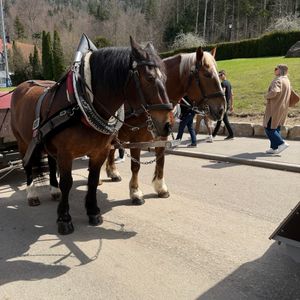 12月半ばでしたが、ノイシュバンシュタイン城は、マリエン橋からも見ることができました。帰りは馬車で帰ったのですが、次の集合時間までギリギリだったので、乗りたい場合は少し急ぎめに乗り場まで行った方がいいと思います。