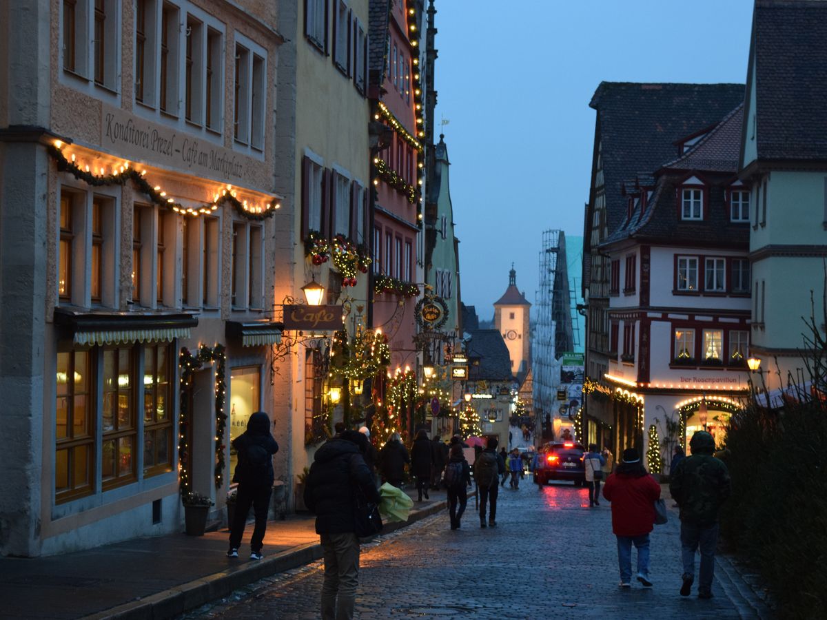 ローテンブルクは中世の面影残る街並みですが、夕暮れどきや暗くなってからもまた雰囲気が良いので、明るいうちに到着して帰るころには日没を過ぎているという訪問時間帯はちょうど良かったと思います。