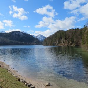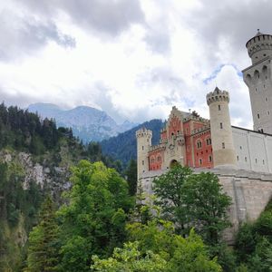 ノイシュバンシュタイン城も周りの山々、湖の風景も美しく、都会のミュンヘンとちがってドイツの郊外を知ることができて楽しかったです。昼食を取る時間がないかもと考えていましたが、実際は1時間ほどあり、麓のレストランで食べました。14時ちょうどのバスでお城へ(20分おきに出発するようで、00分、20分、40分となっているようです。運転手さんに直接支払うので現金のみだと思います)。マリエン橋での撮影時間も十分、入城時間が15時45分だったので、お城の前で少し待ち時間がありました。バスの中でもらった地図には、麓にしかトイレマークはありませんでしたが、お城にもトイレはあります。お城からの帰りは下りなので歩きました。疲れるほどではないです。