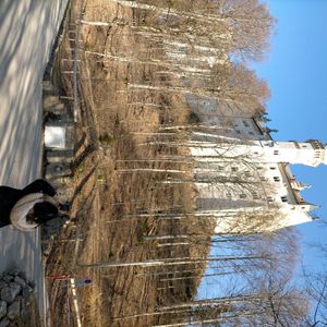 9:00頃ホーエンシュバンガウに到着、ガイドさんからノイシュバンシュタイン入場は11:20の予約になっており、早められなかったとのこと。DFSと周囲の散歩等で時間を潰しました。私たちはホテルミューラーの横から坂を上がり教会とホーエンシュバンガウ城へ行きました。ホーエンシュバンガウ城も時間指定の予約制なので中には入れませんでしたが、こちらからのノイシュバンシュタイン城の景色もすてきでした。