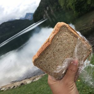 私たちはランチ用のパンを持参して、アルプ湖畔で食べました。