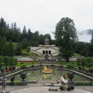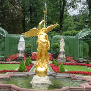 リンダーホーフ城は、ルートヴィヒ2世が建てた城の中で、唯一完成した城です。城内は、ロココやバロック様式をとりいれ、1階で用意した食事をテーブルごと2階の食堂にせりあげる装置など、ルートヴィヒ2世のこだわりが凝縮されています。庭の噴水や、幻想的なヴィーナスの洞窟なども必見です。
