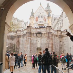 多国籍メンバーの英語ツアーでしたが、日本人が多かったです。ノイシュバンシュタイン城だけでなく、リンダーホーフ城やキリスト受難劇で有名なオーバーアマガウなど、公共交通機関では多分1日で回り切れない場所を効率よく観光できたのはよかったです(ノイシュバンシュタイン城と同じくらい見どころがありました)。ガイドは英語を話しますが、バス車中では日本語のオーディオガイドも聞くことができました。ノイシュバンシュタイン城観光後、日本人数名が時間になっても戻ってこず、ガイドが一生懸命探してくれました(集合場所がわからなくなってしまったようです)。日本のバスツアーのように、バスの前面に集合時間が掲示されたり、渡された地図に集合地点が明記されているわけではないのでご注意ください。また、これからの季節は大丈夫だと思いますが、夏の避暑地なのでとても冷え込みます。5月4日に訪れましたが、夕方には気温0度で、みな冬の服装で震えていました。ノイシュバンシュタイン城の入場待ち時間は、吹きっさらしの屋外で待つため、とても寒くてつらかったです。