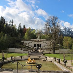 リンダーホーフ城は、ルートヴィヒ2世が建てた城の中で、唯一完成した城です。城内は、ロココやバロック様式をとりいれ、1階で用意した食事をテーブルごと2階の食堂にせりあげる装置など、ルートヴィヒ2世のこだわりが凝縮されています。庭の噴水や、幻想的なヴィーナスの洞窟なども必見です。
