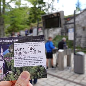 バスの中で事前にチケットが配られていますが チケットに記載された入城時間まで城内に 入場できる時間が 結構あるので 先に マリエン橋に行って ノイシュバンシュタイン城を カメラに収めるといいと思います よくパンフレットやガイドブックに載っている アングルで 写真に撮ることができます