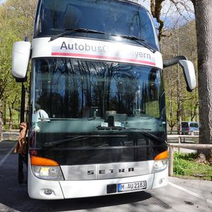 参加料金は謂わば「移動費」「ツアーガイド費」ですが、先述の通りガイドさんが終始ついてくれるツアーではなく、移動についてもバイエルン州は特にグループ移動は格安でできますから、一人57€は高いです。個人手配なら半額~2/3程度には抑えられると思いました(且つ観光時間がもっととれる)。また、バス内でのイヤホンガイドで提供される情報は、個人で調べて十分補完できる内容です。