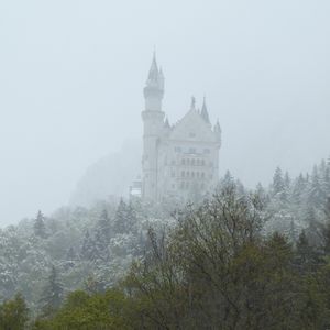 お目当てのノイシュバンシュタイン城の近くまできたら雨から雪に変わり、到着した時には城は霧の中を宙を浮くように幻想的庭私達ツアーを出迎えてくれました。