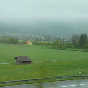 市内を抜けハイウェイをオーストリア方面に南下して行くにつれて、丘陵地帯の牧草が広がる田舎がつづきますが、イギリスとも違いドイツ北部にはないアルプスならではの唯一無二の景色が広がります。