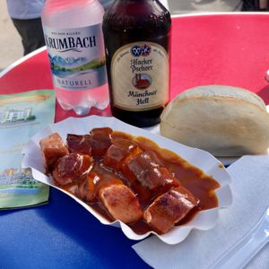 お城のチケットはバス内でガイドさんから購入。入城時間が書いたチケットを渡されます。お城までの行き方は、ガイドさんがバス内で丁寧に説明してくれますが、他の方の体験談も参照し、シャトルバスでマリエン橋を目指す事にしました。お城の麓、ホーエンシュバンガウに到着。いざお城へ!と行きたいところですが、小腹は減るし喉も渇いた。入城ツアーの時間が気になるので、レストランはやめて、軽くスタンドでビールとカリーヴルストを頂きました。太陽がそそぐからっとした夏の日、お城とビールとカレーソーセージ、それは至福のランチ体験でした。