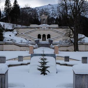 リンダーホーフ城は、ルートヴィヒ2世が建てた城の中で、唯一完成した城です。城内は、ロココやバロック様式をとりいれ、1階で用意した食事をテーブルごと2階の食堂にせりあげる装置など、ルートヴィヒ2世のこだわりが凝縮されています。庭の噴水や、幻想的なヴィーナスの洞窟なども必見です。