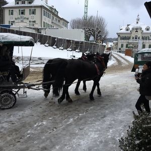 参加した時のメンバーは時間通り集合し、久しぶりに時間通りに集合できたと話されたガイドさん。バスの移動中ではルードヴィヒII世のことなど歴史的背景を詳しく説明してくださいました。わたしはそのような背景など全く調べてもなく、元々詳しいわけでもありませんでしたので、予備知識があるだけで見て回る時の面白さは違いました。割と長かったので寝てしまった方もいたかもしれませんが、なかなか面白かったですよ。お城までは各自登るので注意事項やオススメのお店を教えてくださいました。冬季ですので路面の雪が溶けていないためバスが出ておらず、マリエン橋も行けませんでしたが、自分は楽しめました。馬車は出ていますが、乗るまでに待ちますし、乗れても満員になるまで待つので時間が読めませんからご注意ください。解散してからすぐ並べば乗れるでしょうが、ホーエンシュバンガウ城などを先に見る場合(中には入れません)はまず乗れないでしょう。足腰に自信がない方はゆっくり登るしかないですね…歩きの路面は特に凍っておらず、歩きにくさはありませんでしたが、ヒールで来ている方がいて驚きました。さすがに歩きやすい靴の方がいいと思います。馬糞も落ちてますし(それは避ければいいですが)、若干泥で汚れます。キャリーケースやベビーカーを持っている方、車椅子の方は結構急な坂なので大変そうでした。
